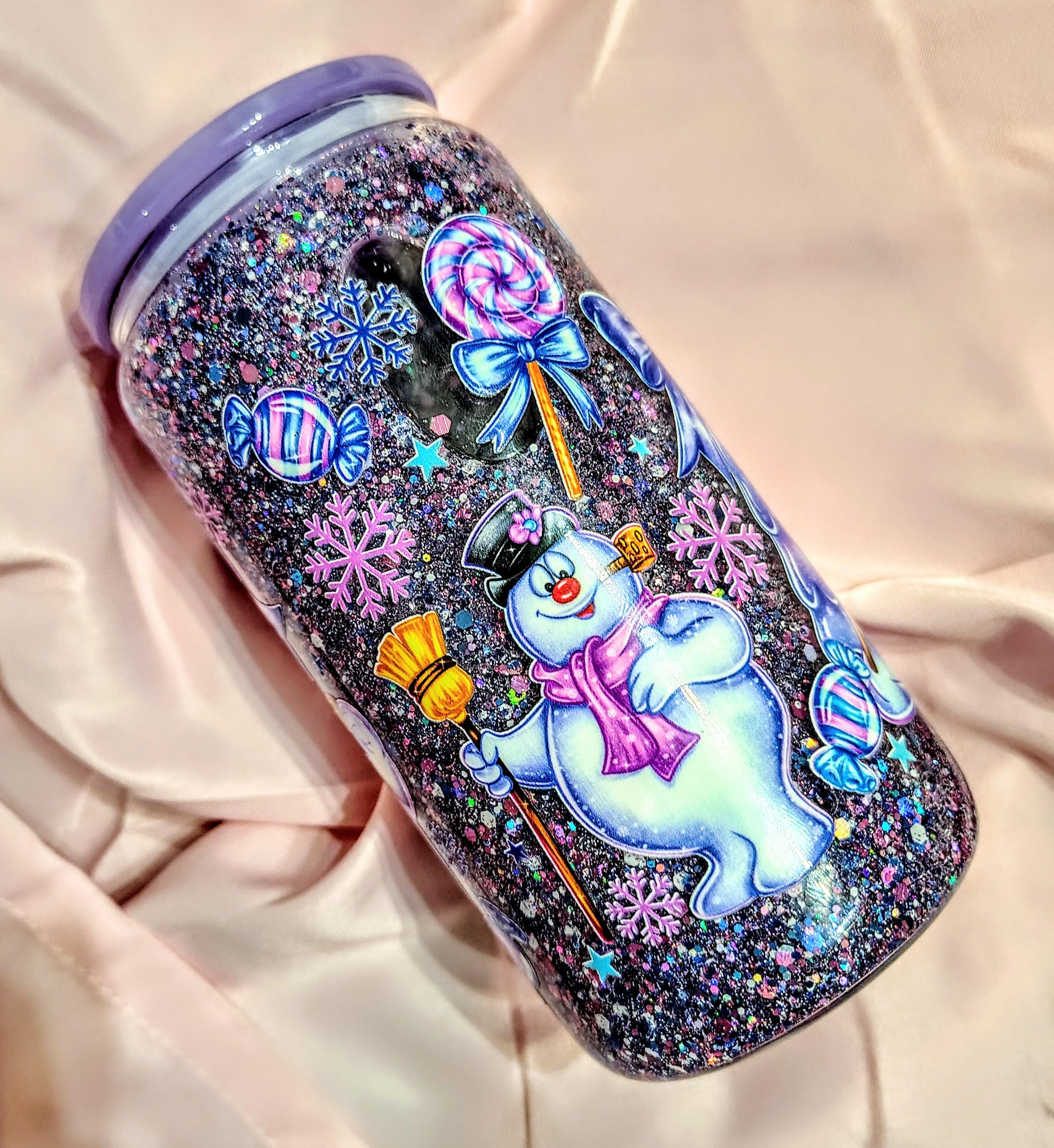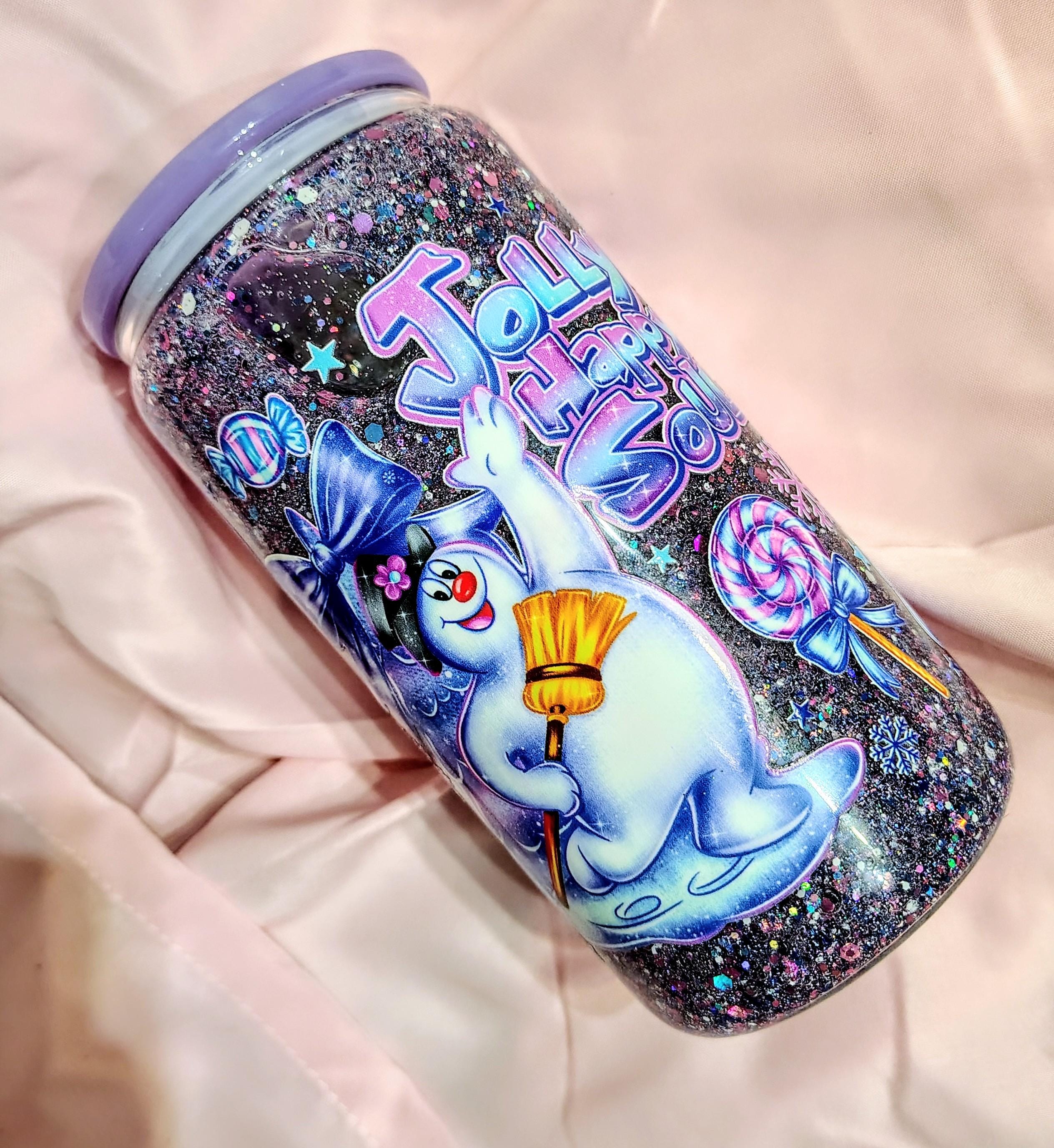Bring some frosty fun to your drinkware with this adorable Frosty-inspired snow globe tumbler! Filled with sparkling glitter and festive charm, this 16oz glass tumbler is perfect for your favorite holiday drinks.