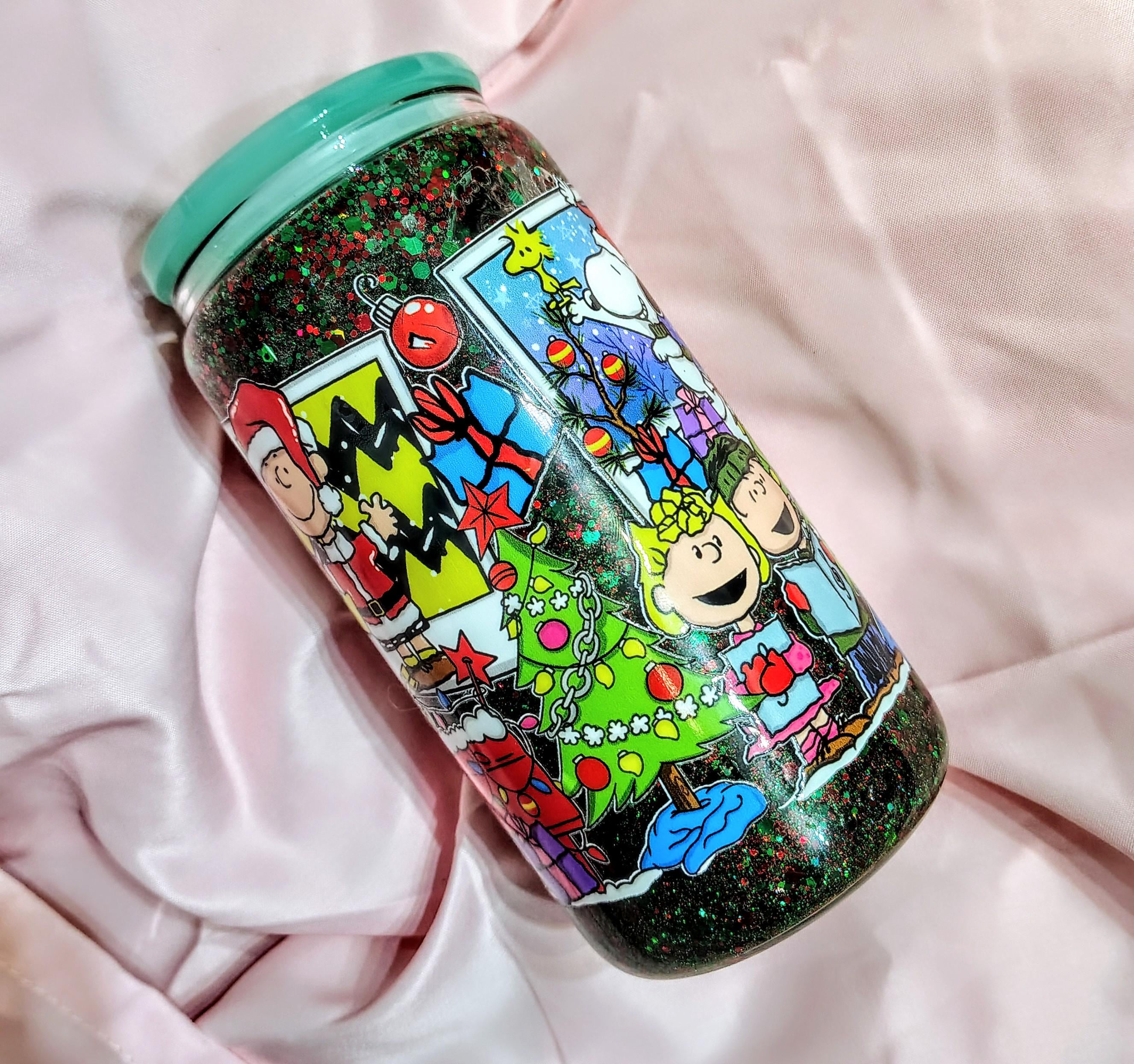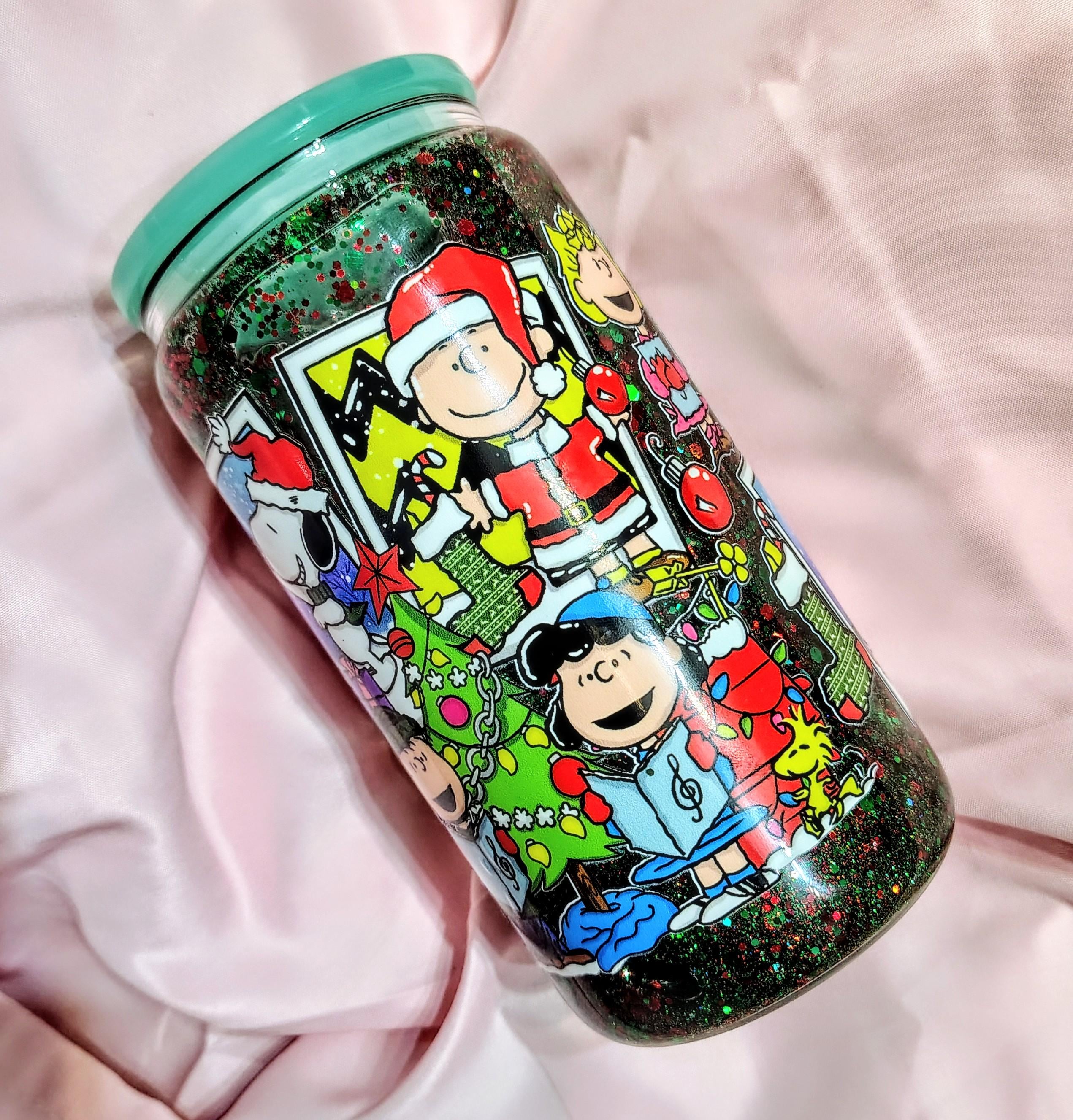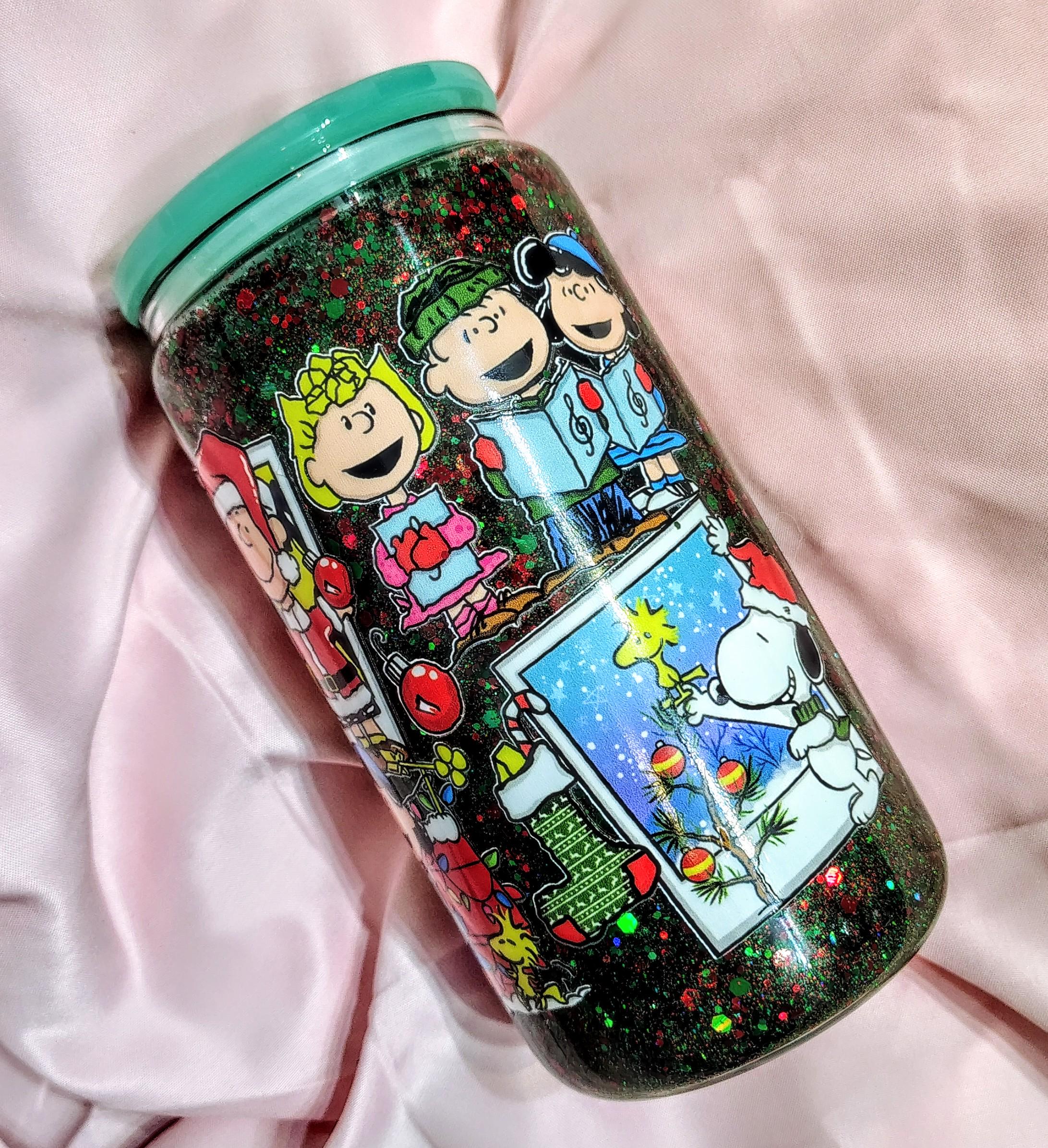 Celebrate the holidays with this adorable 16oz glass snow globe tumbler! Filled with red and green glitter for a festive sparkle, this tumbler features a cheerful Christmas scene and comes with a matching lid and straw. Perfect for cocoa, coffee, or your favorite winter drink!